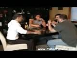 Bisexuelle Teenie Nutter teilen sich den dicken Schwanz vor der Cam